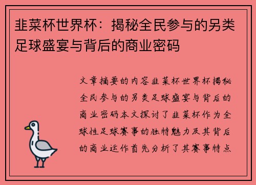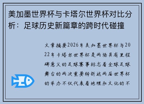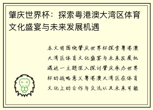 文章摘要:黄岩世界杯不仅是一场全球瞩目的足球盛宴,它更是一个全球文化、经济和社会交融的缩影。在这场世界级赛事背后,汇聚了各国的球迷、球员以及不同文化的碰撞。本文将从四个方面深入分析这一足球盛事的背后故事:首先,黄岩世界杯如何成为全球足球文化交流的桥梁;其次,赛事对各国经济的推动作用及其背后的经济学分...